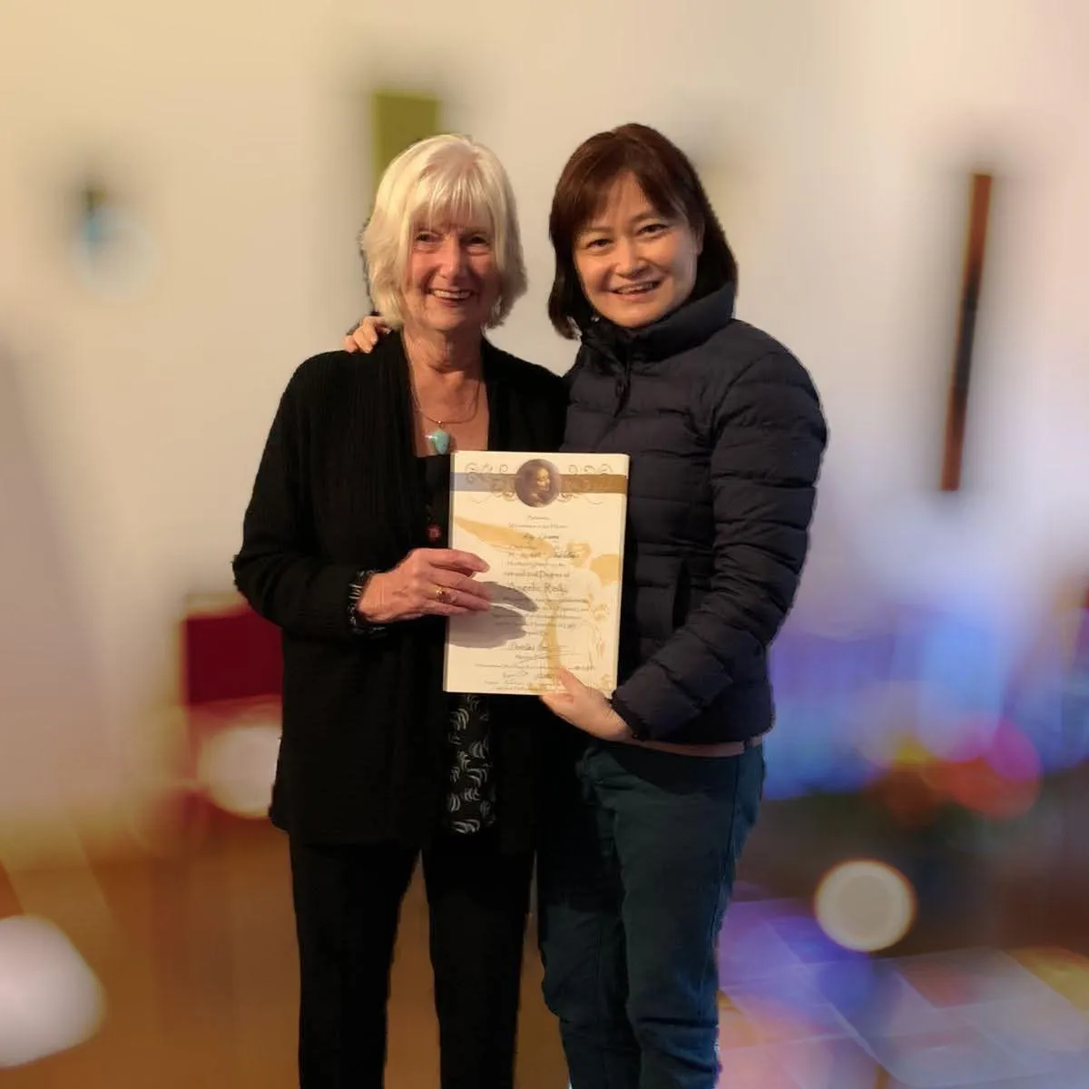 过去 10 年,我持续深耕能量疗愈与灵性成长领域,师从 英国天使灵气联合创办人 Christine Core(图片女士)。
